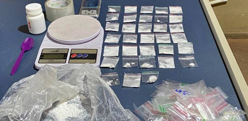 Durante as buscas, foram apreendidos 33 papelotes de substância análoga à cocaína, uma porção de cocaína em pó, um recipiente com substância esbranquiçada possivelmente utilizada para mistura, duas balanças de precisão e diversas embalagens vazias comumente usadas para a preparação e comercialização de drogas.